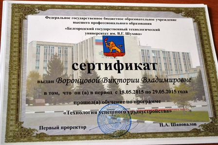 Вручение сертификатов по курсу «Технология успешного трудоустройства» (22.05.2015)